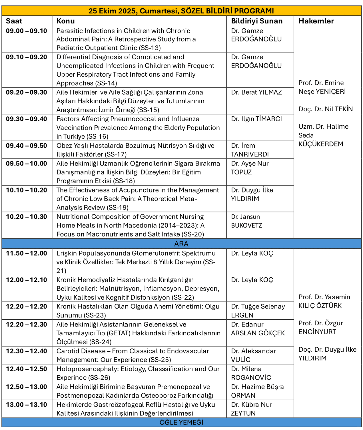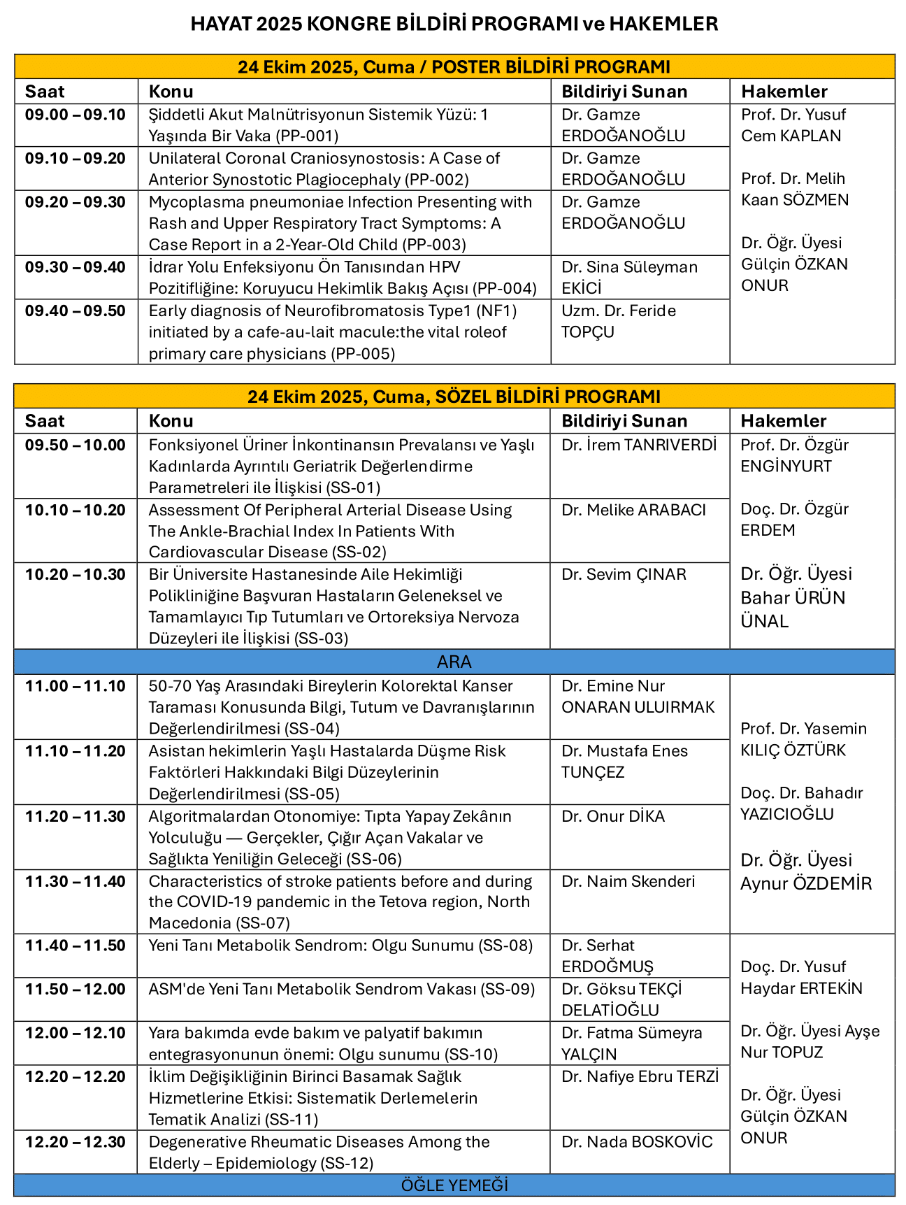 Kurslar, paneller, sözel ve poster bildiriler, interaktif katılımlı oturumlarla birinci basamakta aklımıza takılan sorulara yanıt bulduğumuz, sosyal programı ile yorgunluk ve stresten uzaklaşacağımız dolu dolu bir HAYAT 2025 bizleri bekliyor.